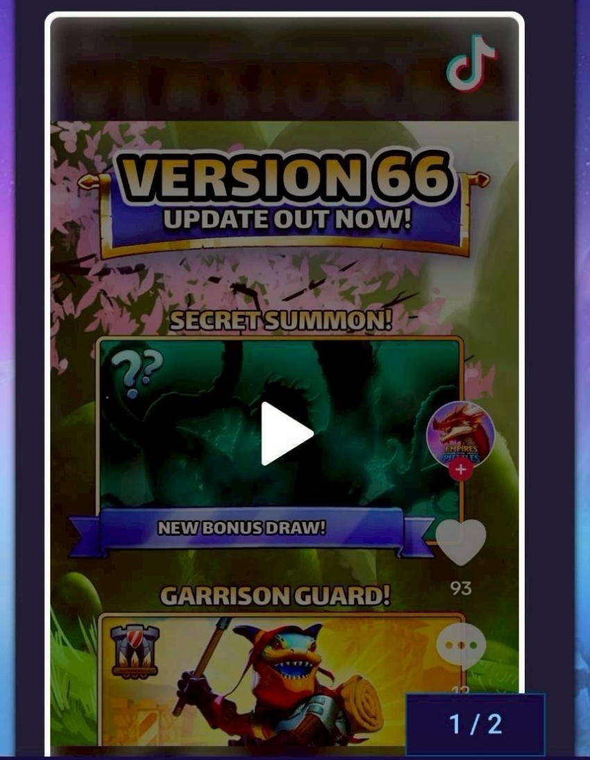 Version 66 Release Notes & Status Status April 2, 2024 1:00 PM: Android rollout has started. We hope to do the same for iOS soon. [NEW & UPDATED CONTENT] Goblin Village Apr. 15, 07:00 UTC – Apr. 18, 07:00 UTC The Garrison Guard arrive in Goblin Village and bring their own Mega Minions to battle! New Garrison Guard Family Heroes: Legendary Vanya Shimmerscale Epic Greg Rare William Hero League Returns! Starting Apr. 15 Take Two for Hero League 2024! The issue that caused some Hero League battles to freeze and become unplayable has been resolved. New: Secret Summon The Secret Summon has a chance to appear as a Bonus Draw from selected summons (e.g. Epic Hero Summon, Elemental Summon and various limited duration summons). [IMPROVEMENTS & FIXES] Improvements Added an Additional Info box with clarification text to some Special Skill descriptions. Made the Fast Battle indicator more visible in battle when it is enabled. Added TIkTok and Instagram links to Inbox/Social tab. Modified mana steal to adjust for Heroes having different mana speeds. Mana steal now grants the same percentage of max mana as is stolen. Added an info box to Nautica’s Hero card that specifies their mana generation increase does not apply to other copies of Nautica. Adjusted some special skill animations (Akkorog and Galapago). Fixes Fixed an issue that caused the costume tutorial to appear when in Quest view. Fixed an issue with Mulgog’s Special Skill audio. Fixed an issue with the ability to claim chests from some specific summons on devices with narrow and tall screen resolutions (like Galaxy Z Fold3). Fixed a visual scaling issue with Alchemy Lab on tablets Status effects or stacks that affect mana generation now correctly only apply to mana gained from matching tiles (when attacking) or at the end of a turn (when defending). Fixed an issue with the fiend/minion cloning behavior where they didn’t clone correctly to wings and the center. Now the fiends/minions will fill empty familiar slots on heroes over time but will not attempt to duplicate themselves if there are no empty slots available in the targeted locations. Fixed an issue where the attacks that chain “though all the enemies who are adjacent to any hit enemy” ended if one of the hit enemies was defeated by the attack. Now the attack continues past the enemy to adjacent targets as intended. Fixed an issue where purchasing a calendar offer very close to the expiry time could prevent the purchase from being counted toward the calendar chest. Belladonna’s special skill now executes in the correct order, and increased healing from fiends is included in the initial heal. Troops are now displayed correctly on Riddles of Wonderland stages before and after the element change stage property. Fixed some unintended situations where restrictions on Legendary Troop conversion were not properly applied. Fixed an issue that caused some PoA missions to not coincide with the start of relative Events.