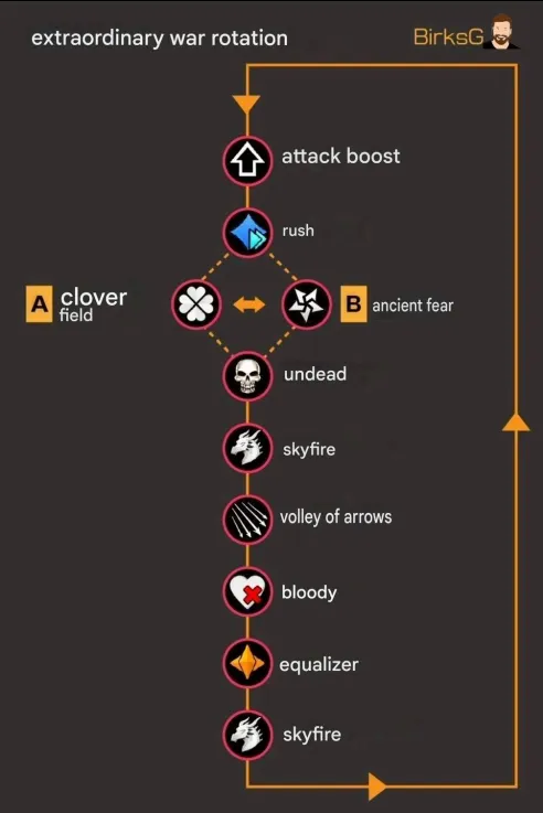 VIII. War Playlist Find content creator video guides for each type of war Find all the infographics from the top 100 wars (Strategies for defeating certain heroes...) by Heyalexa here: [placeholder] CLOVER FIELD Psycrowsis : Général J : BLOODY WAR General J : Psycrowsis : ARROW BARRAGE Zanemarossi : Psycrowsis : MISCELLANEOUS Psycrowsis : zanemarossi : WAR EQUALIZER Zanemarossi : Psycrowsis : ATTACK BOOST ANCIENT TERROR Psycrowsis : RUSH ATTACK General J : Psycrowsis : UNDEAD HORDE Psycrowsis : SKYFIRE Claythor : Psycrowsis : Général J : ATTACK BOOST Psycrowsis :