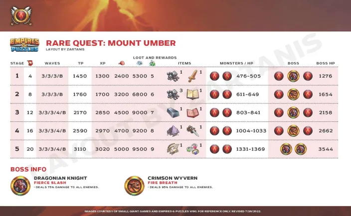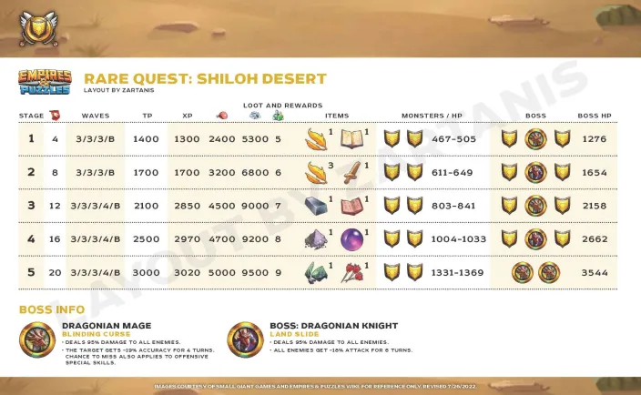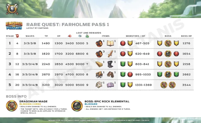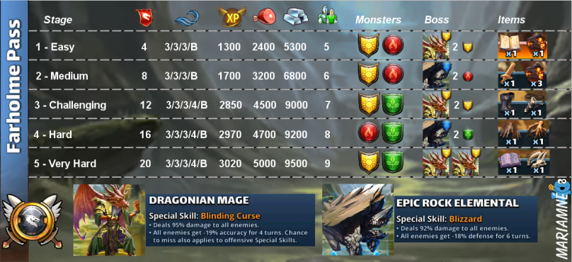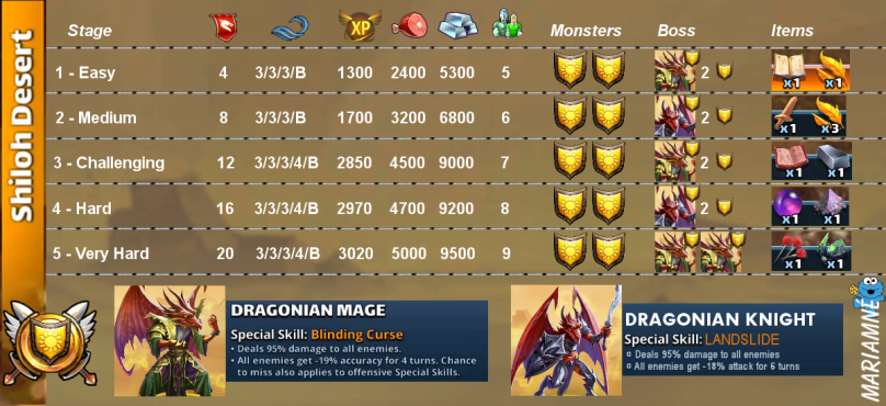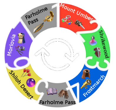 This topic is on “Rare Quests”. These quests allow the recovery of various materials which are 3* and 4* evolution materials. Crédits by @Mariamné Rotation Stages Credit by Marianné & Zartanis Mount Umber Shrikewood Frostmarch Farholme Pass ( Tome of Tactics) Shiloh Desert Morlovia Farholme Pass (Damscus Blade)