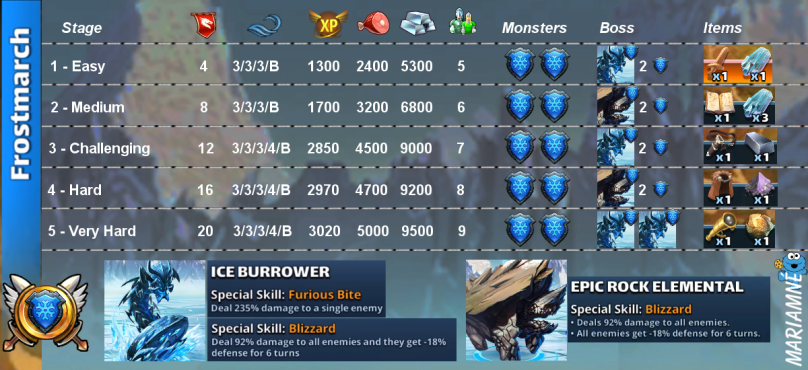 Credit by PlayForFun This is a Challenge Event lasts for 4 days, and each stage reflects Ice or Nature elements. Beowulf Hero Use Bonus The use of Beowulf Heroes in a given stage of the Beowulf Challenge Challenge Event will give a bonus to those heroes. Specifically: Heroes of the Masked God family bypass the Elemental Barriers in this Challenge Event’s stages Heroes of the Beowulf family bypass the Elemental Barriers in this Challenge Event’s stage, and have increased attack, defense, and health (+20%) in this battles. Beowulf Challenge Special Gameplay Fearsome Foes All enemies gain +25% defense against Special Skills. When hit by an enemy, the Hero receives 360 Bleed damage over 3 turns. Call to Glorious Battle Every 3 turns, all Heroes gain 15% mana. They also gain the following status effect buffs for 1 turn: +100% additional power for Special Skill attacks. +50% increase of any healing received. Summons Costs Like all other Event Summon Portals, the Portal Cost is per below: Single Summon 10x Challenge Coins OR 350 Gems 10x Summon* 3000 Gems Summoning Appearance Rates Classic Heroes Rare Classic Hero: 53.1% Epic Classic Hero: 19.8% Legendary Classic Hero: 1.2% Trainer Heroes: Rare Trainer Hero: 10.0% Epic Trainer Hero: 1.0% Event Heroes: Rare Event Hero: 7.9% Epic Event Hero: 5.7% Legendary Event Hero 0.3% (Non Featured) Legendary Featured Event Hero 1.0% BONUS DRAW Legendary Hero of the Month: 1.3%